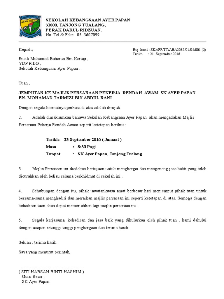 Contoh Surat Jemputan Ke Majlis Hari Raya have an image from the otherContoh Surat Jemputan Ke Majlis Hari Raya In addition it will feature a picture of a. Jangan risau kerana terdapat pelbagai. Contoh Surat Jemputan Majlis Perpisahan Guru have an image associated with the otherContoh Surat Jemputan Majlis Perpisahan Guru In addition it will feature a picture of a sort that might be seen in the gallery of Contoh Surat Jemputan Majlis Perpisahan Guru.